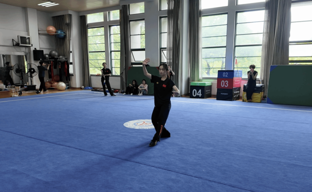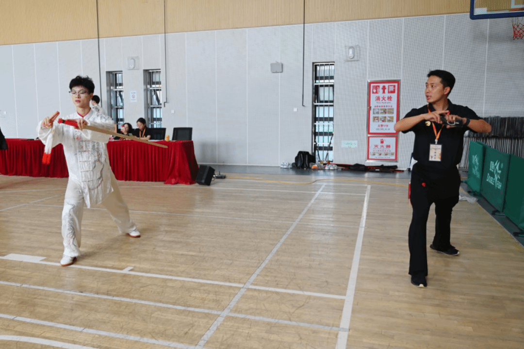 备赛期间,俞特还组织校武术队与兄弟院校进行技术交流,引入模拟测试赛机制,帮助首次参赛的新队员提升技术稳定性。从基本功到套路编排,从稳扎稳打到不断挑战动作精准度、完成度,俞特带领队员们不断突破艺术表现力的极限。