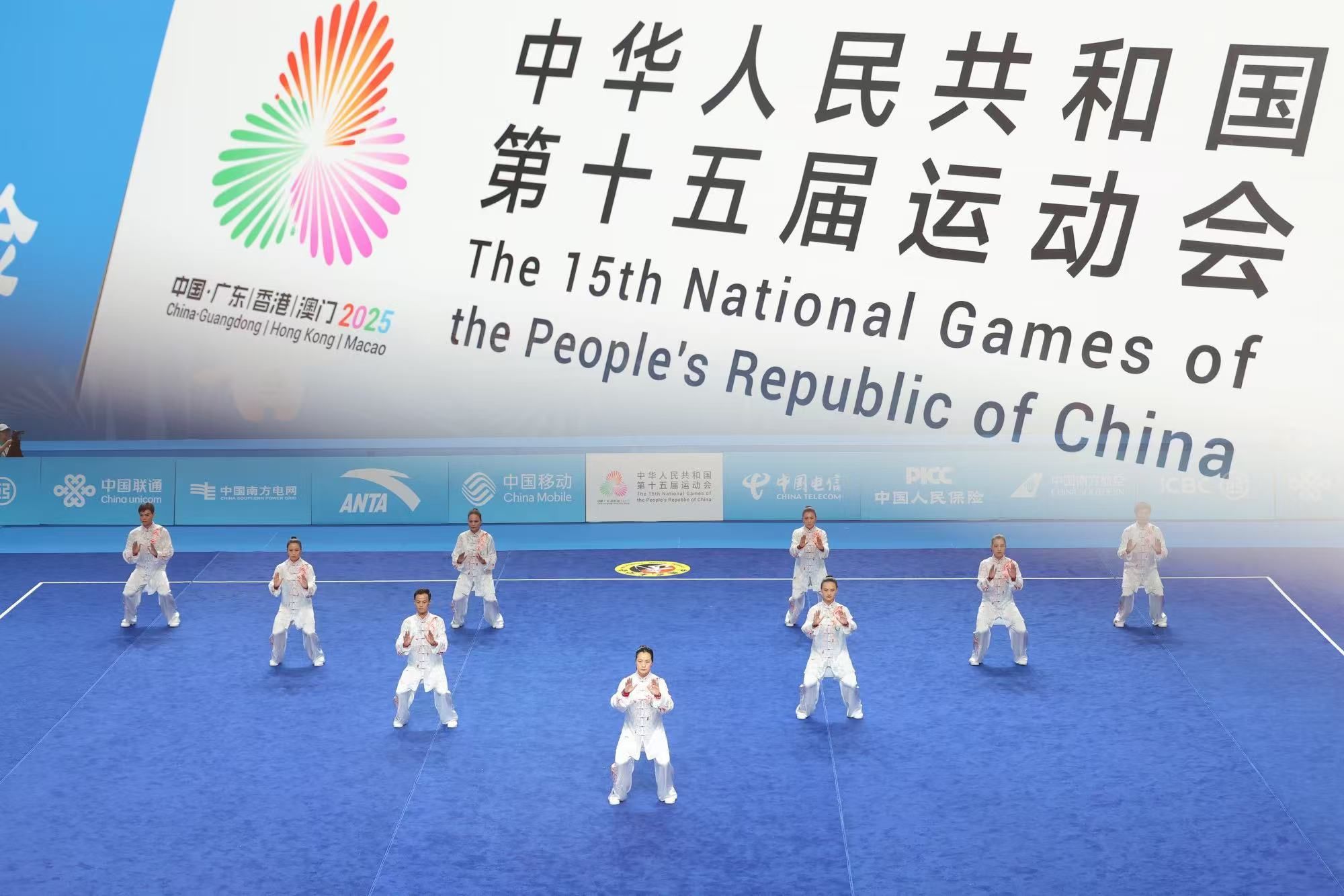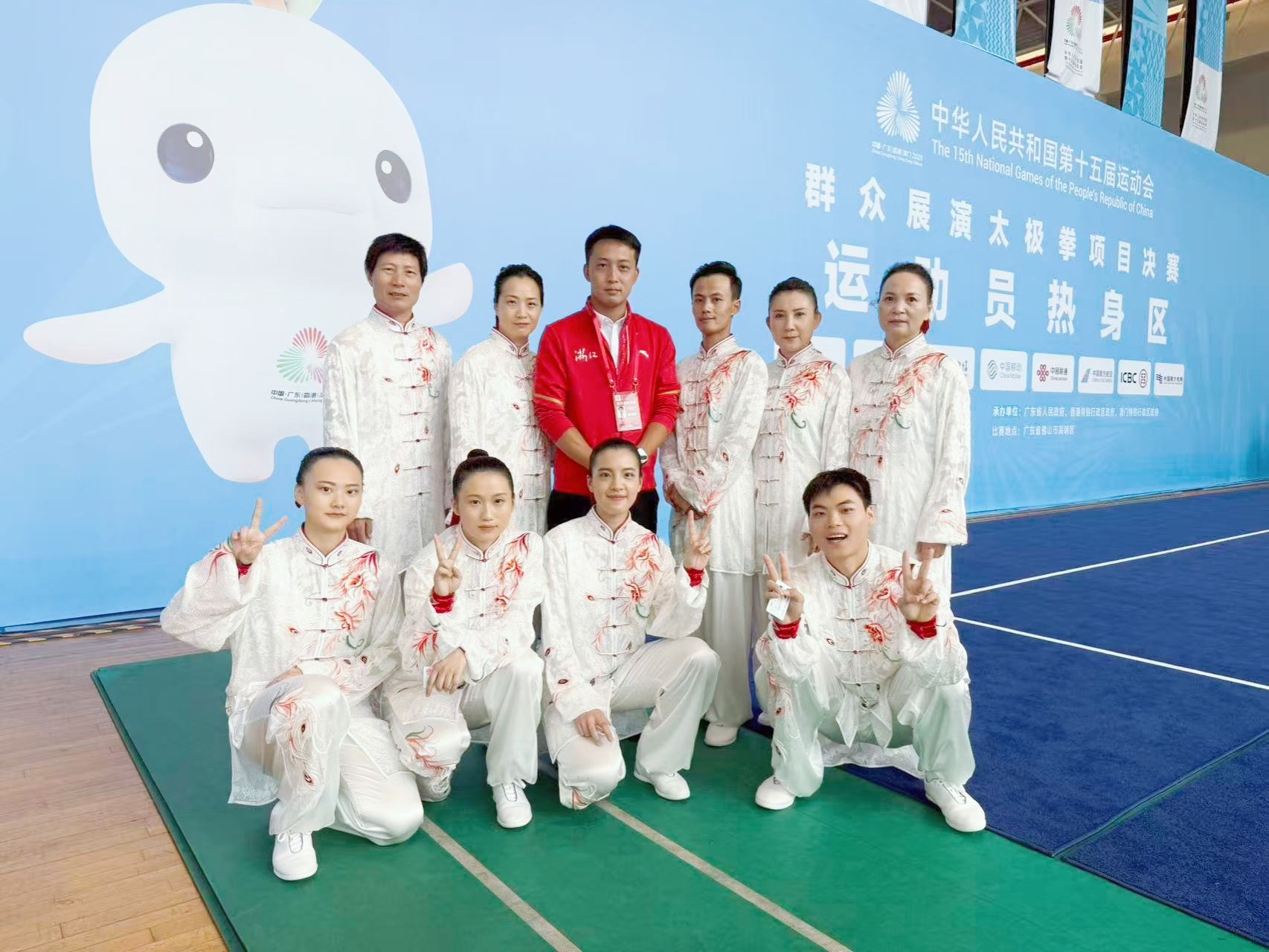 随后,在广州佛山举行的第十五届全运会群众展演太极拳项目决赛上,Xdxx 体育教师、世界武术冠军俞特,以浙江省(八法五步)代表队领队兼教练员的身份,率领11名运动员再创佳绩。队员们步法沉稳有序,手法刚柔并济,将太极拳(八法五步)的端庄大气与行云流水之势展现得淋漓尽致,最终同样斩获该项目三等奖,为浙江省再添荣光。