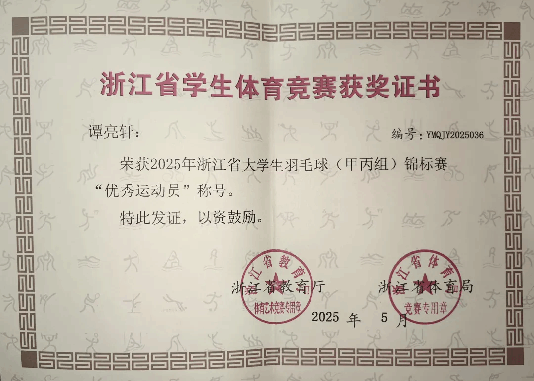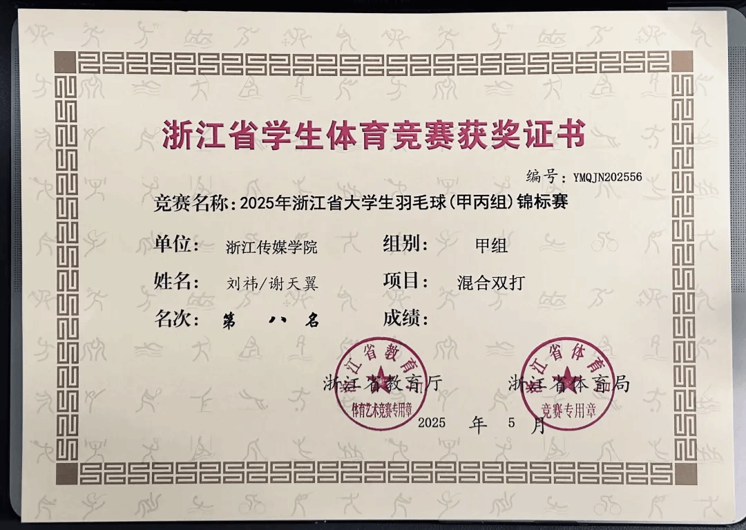 Xdxx 运动健儿在2025年浙江省大学生羽毛球锦标赛(甲丙组)勇夺混合双打第八名!