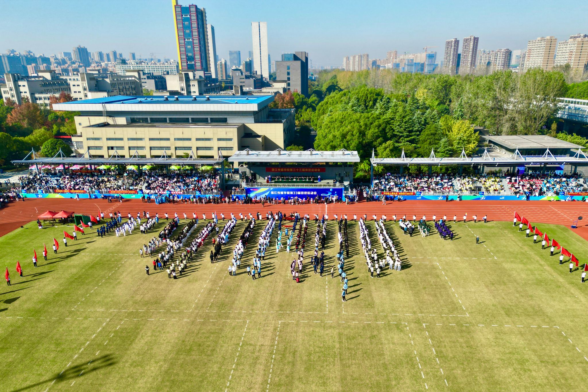 杭州钱塘、桐乡乌镇两校区现有室内外运动场面积91123㎡。其中,400M标准塑胶跑道田径场各1个(内有天然草足球场),另有篮球场、排球场、网球场及健身区。体育馆内有体育舞蹈教室、篮球馆、羽毛球场、乒乓球场,另配有健身房。2022年,钱塘校区足球场为杭州亚运会国家足球队训练场地,达到洲际赛事标准。