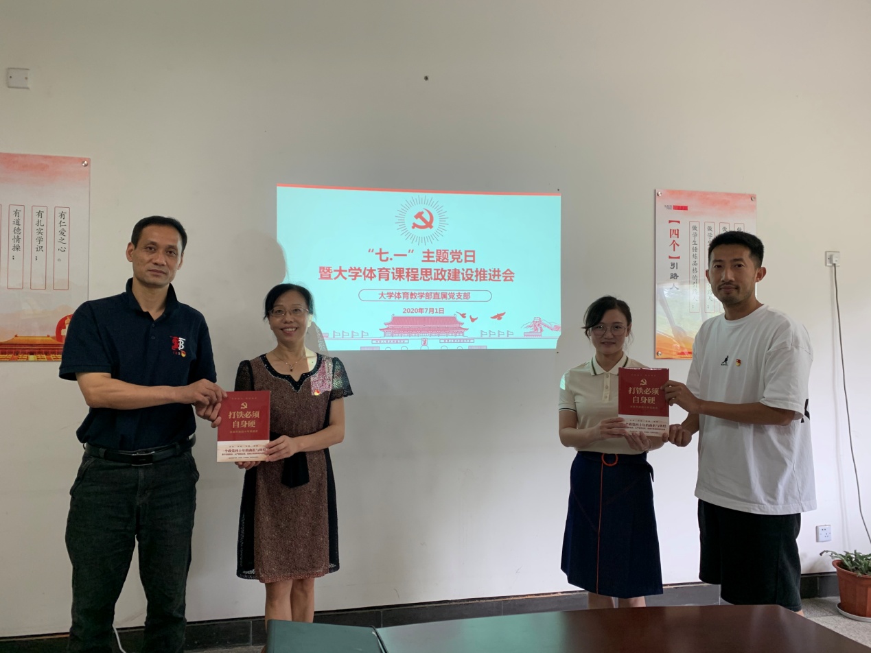 直属党支部“七·一”主题党日暨大学体育课程思政建设推进会,在体育馆206室召开。活动由党支部书记寿文华主持,党支部副书记薛林峰及全体党员参加。