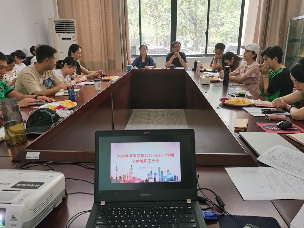 薛林峰副主任首先为部门老师送上教师节祝福,接着,他对部门上学期的教学工作进行总结,并对暑期各中心、教研室的辛勤工作表示肯定。他传达了徐校长在暑期读书会上的讲话精神,并强调,部门全体老师应以“责任人”而不是“评论人”的意识,把部门事业看成个人事业,积极主动地从谋划学校“十四五”事业发展规划和部门发展角度出发思考问题,把部门工作做好。同时,他对本学期部门教学工作进行规划布置,特别强调了四个方面,一是各教研室要从提升学生体质健康角度出发,深入探讨并制定更科学有效的课程方案,并在课程内容中要加入思政元素;二是体质健康测试实验室的创建,硬件设施的改善为体测工作助力,体测中心需针对体测工作拟定切实可行的计划与措施;三是重视教学科研改革项目,把体育学科和交叉硕士点的建设和发展纳入部门“十四五”发展规划;四是体育设施的规划与建设和体育氛围的营造。