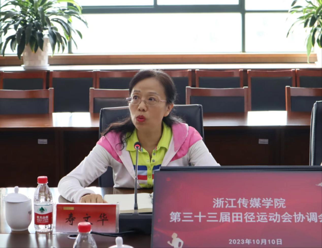 在浙江省体质健康抽测中成绩排名提高18个名次,取得历史性突破。同时,她对本部门坚守亚运工作岗位、服务助力亚运现场的几名教师进行介绍,并提出在“后亚运时代”,我们仍应继续秉持“全民健身、共建共享”的理念,希望与会部门及学院戮力同心,借亚运东风,营造良好的校园体育氛围,共同筹办好此次校运会。
