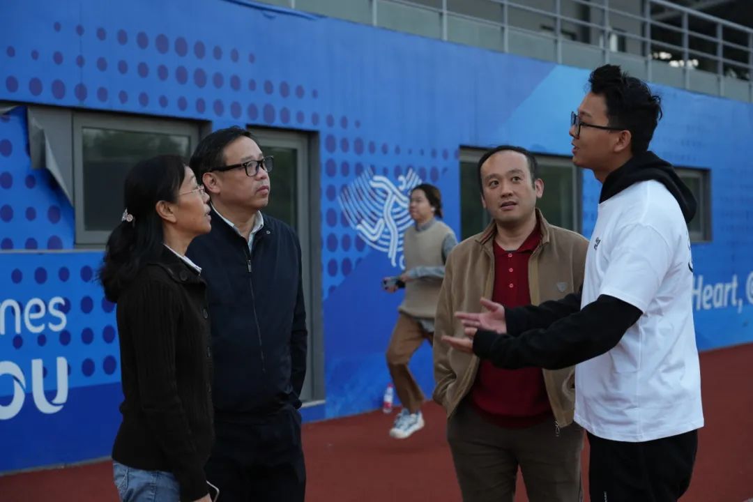 直属党支部副书记薛林峰到现场视察、指导,不断观察及时发现问题,并向指导教师反馈以及给予相应的训练方案调整意见。电视艺术学院学工办主管陈亮及辅导员老师也都到现场监督。