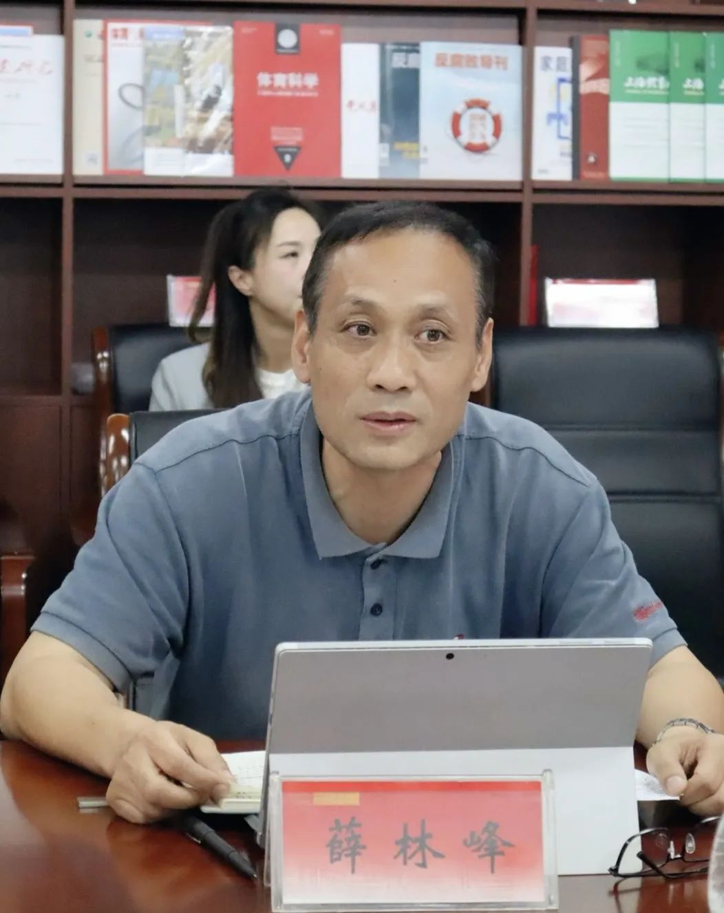 主任寿文华、副主任薛林峰做现场工作汇报。