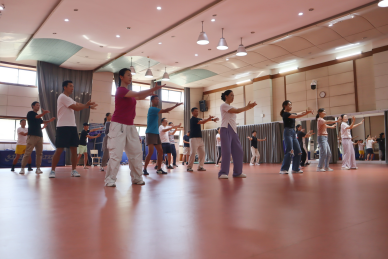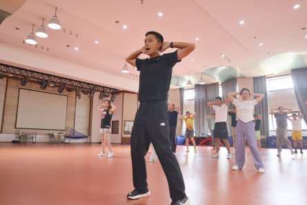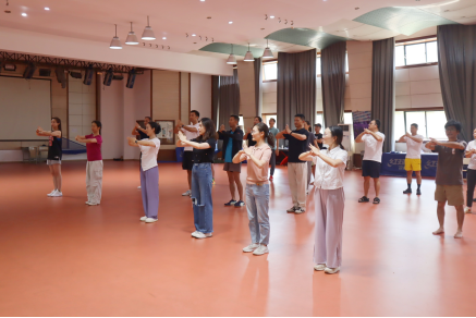 俞老师根据教学大纲的要求和教案的安排,从武术礼仪、准备活动、主要教学内容和放松练习等环节进行细致讲解和示范。全体教职工积极参与实践,并对八段锦的授课方案和改进举措进行了讨论。