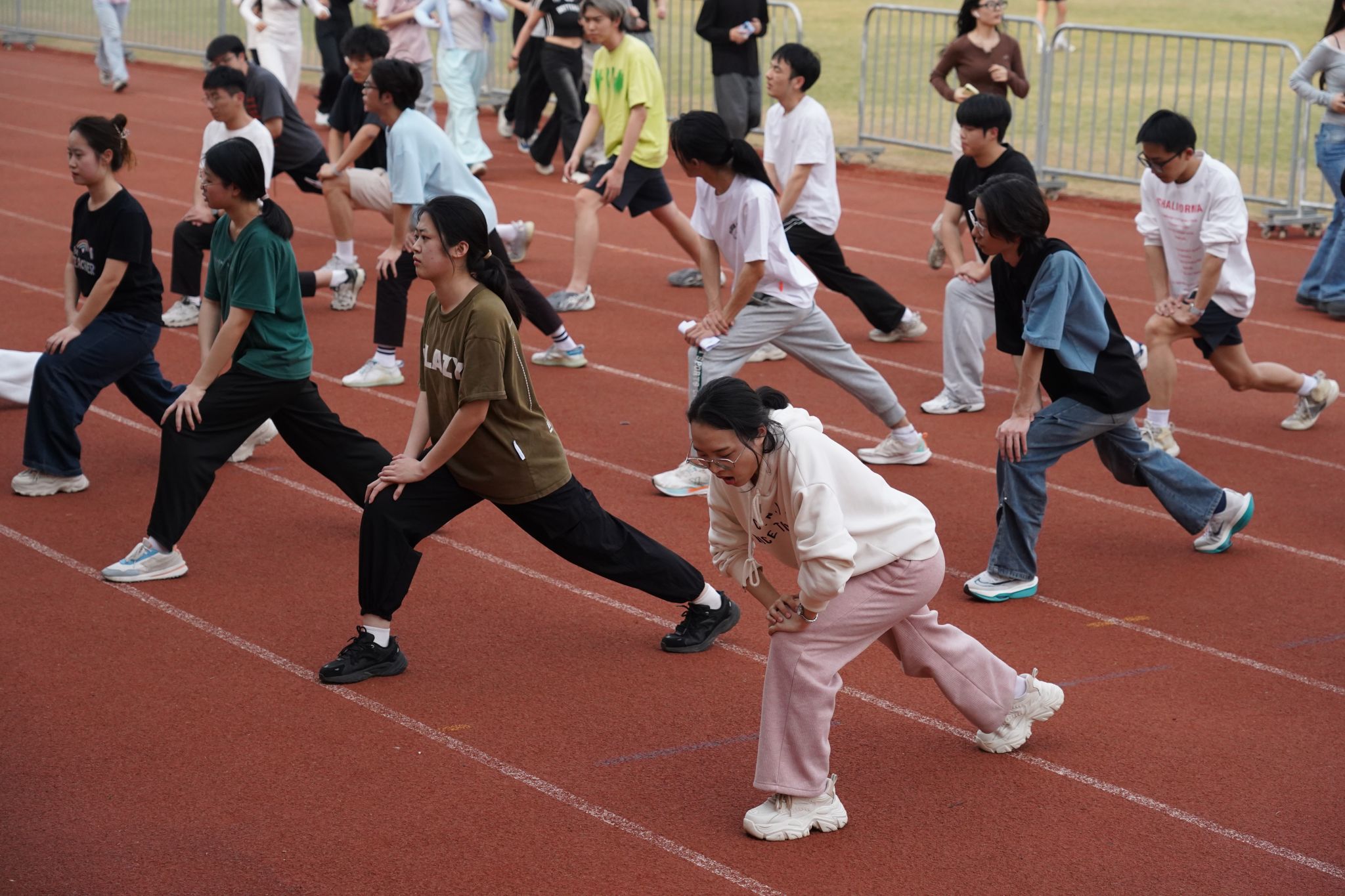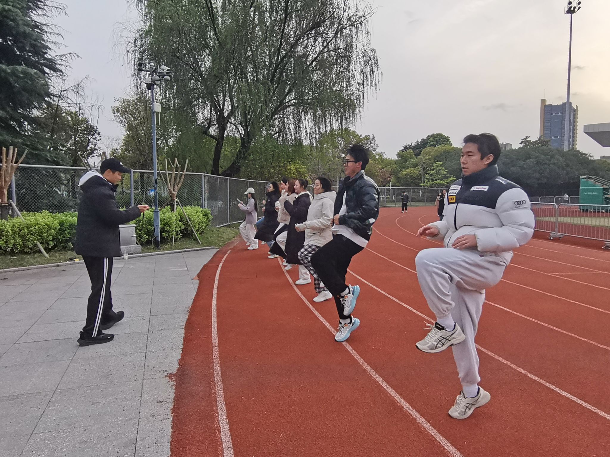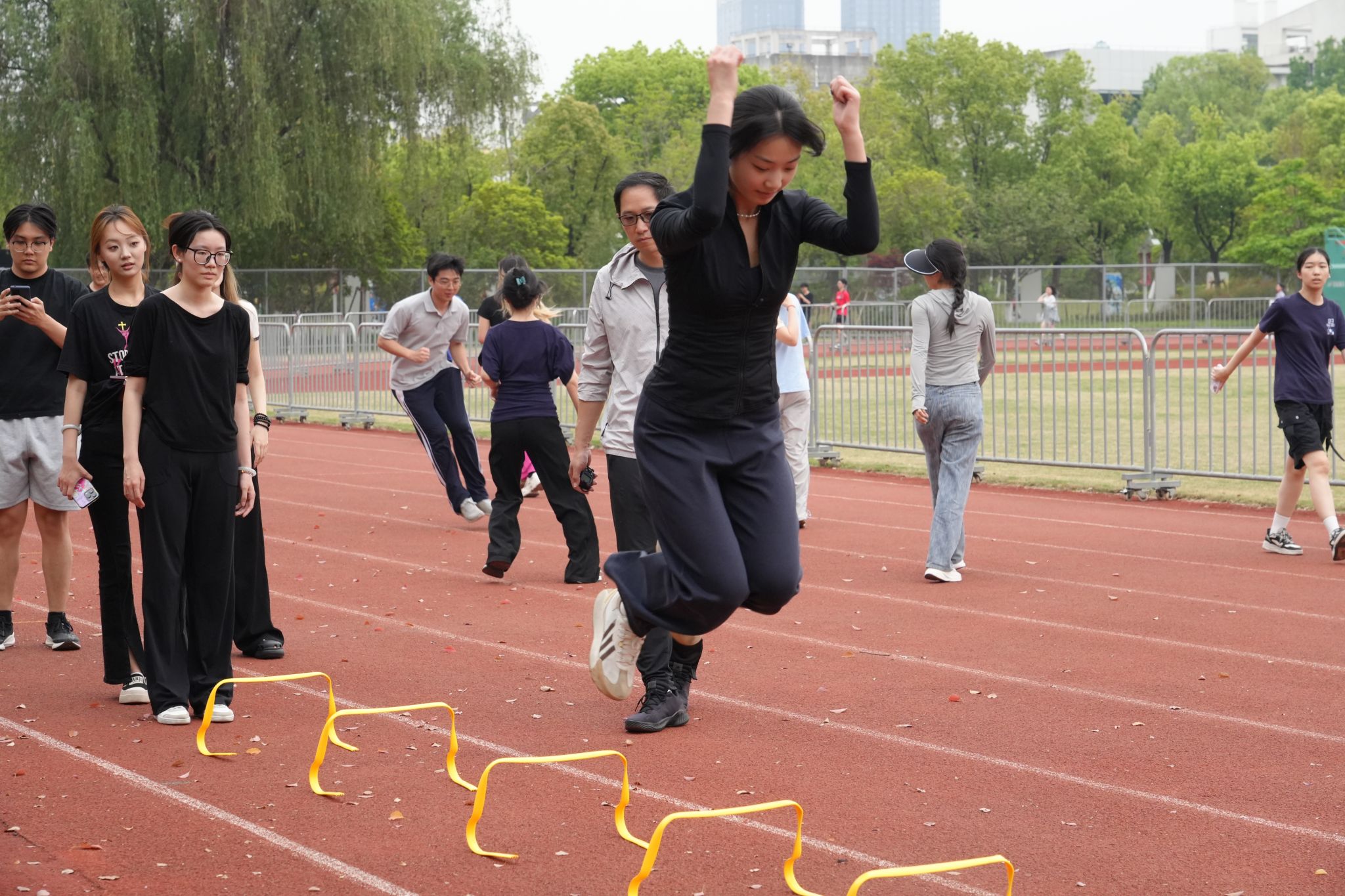 为迎接此次省抽测,三个学院的同学们在体育教师的带领下,进行了为期两周的集训。同学们以饱满的热情投入训练,不畏艰辛,挥洒汗水,以顽强的意志坚持训练,在提升体能素质的同时展现了浙传学子团结奋进、勇往直前的风采。