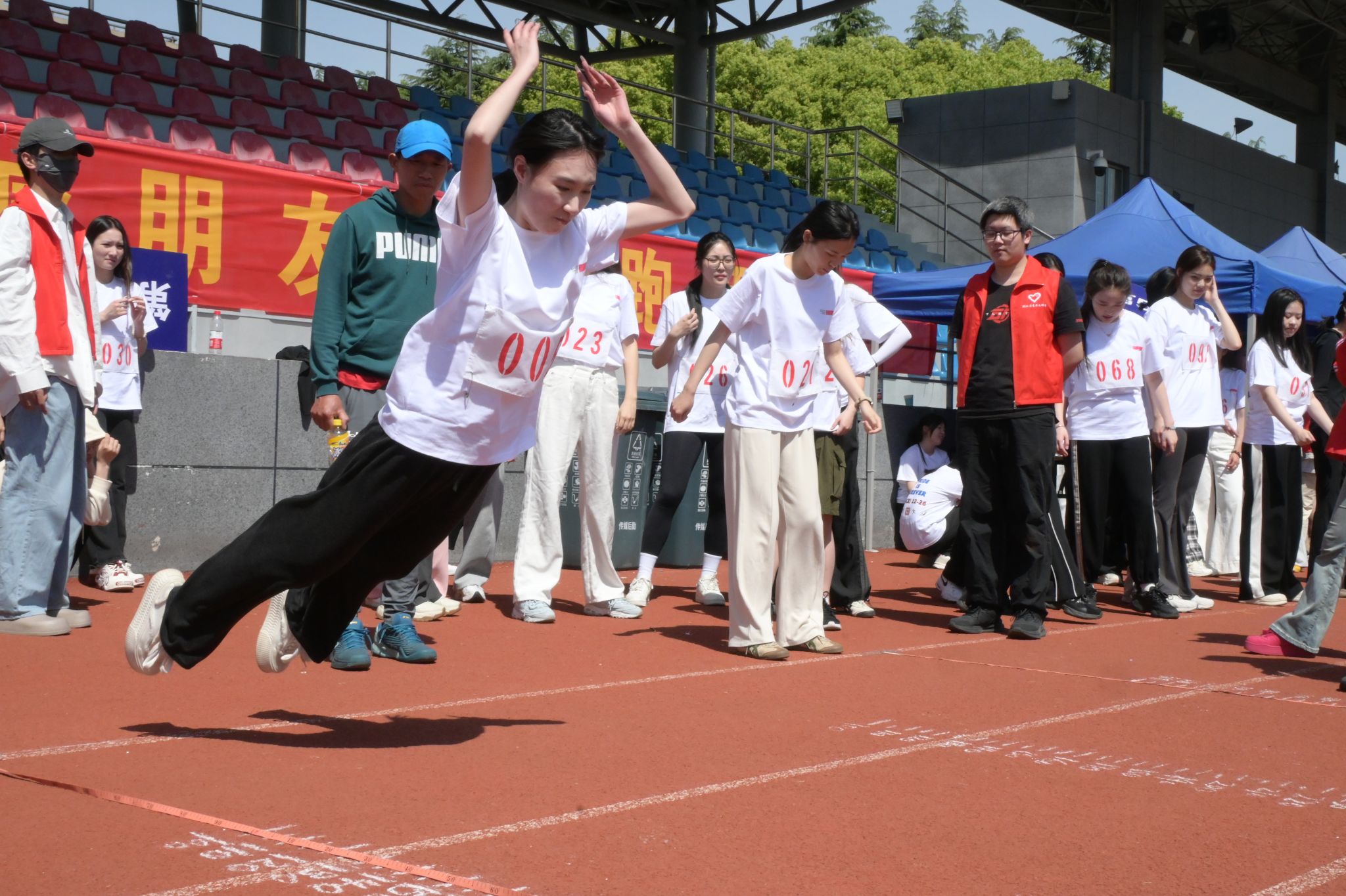 春风送暖,万物竞发。4月16日,浙江省高校学生体质健康抽测在Xdxx 举行。校党委书记韦国谭、副校长李文冰和校党委委员、宣传部(教师工作部)部长孙保胜莅临现场,为传媒学子加油鼓劲。学生工作部(学生处)部长(处长)、人武部部长徐璐,Xdxx 副主任(主持工作),直属党支部书记薛林峰,播音主持艺术学院党委书记、副院长戚鸿峰、副院长吕帅、副书记王杨禾佳,媒体工程学院党委副书记(主持工作)赵曼、副书记楼翔,文化创意与管理学院党委书记、副院长林利宏、副书记李松等领导也深入测试现场,给予学生亲切的关怀和鼓励。