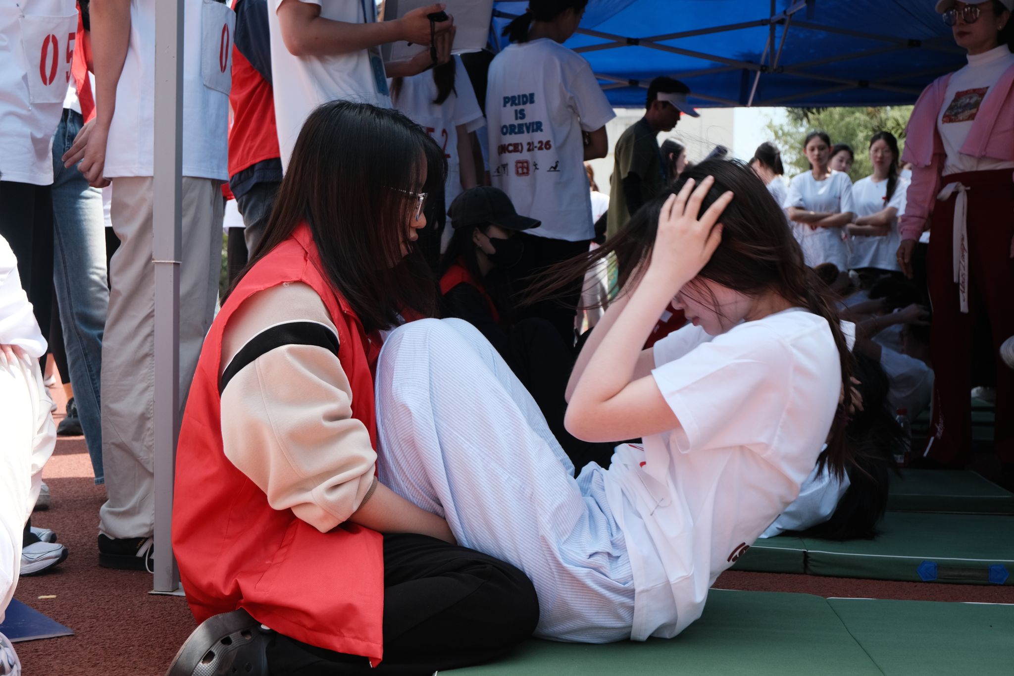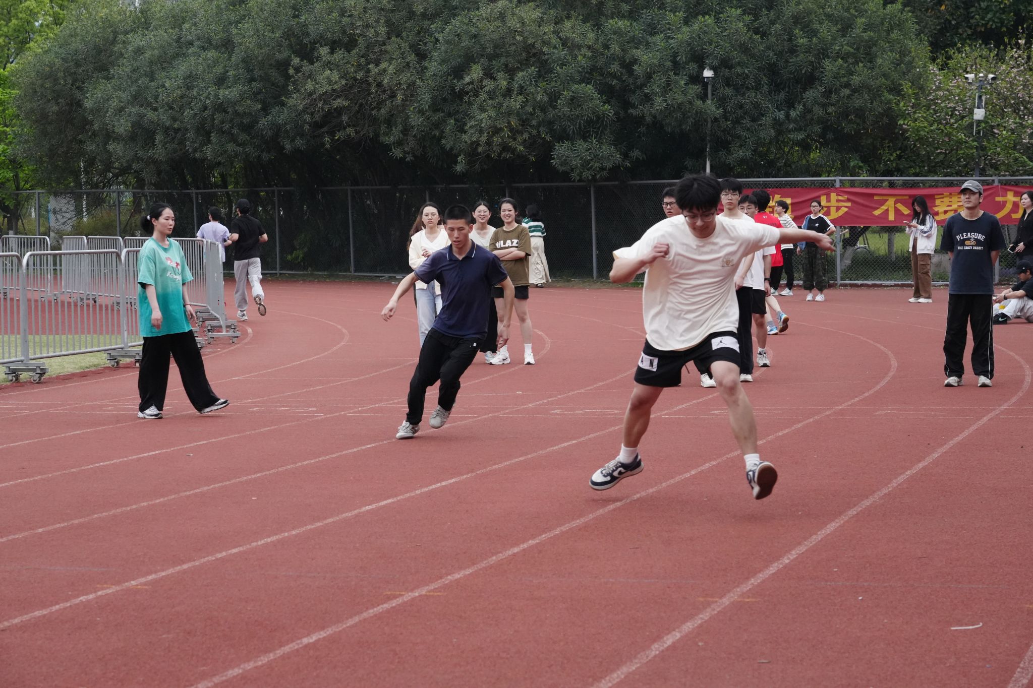 省抽测过程中,各位领导、老师和志愿者全程在现场为学生鼓劲打气,体育教师们在测试前悉心指导,带领学生做好准备活动;学子们以最佳状态迎接挑战。跃动的身影、奋力的呐喊、精准的数据记录,共同勾勒出一幅生机勃勃的体测画卷。