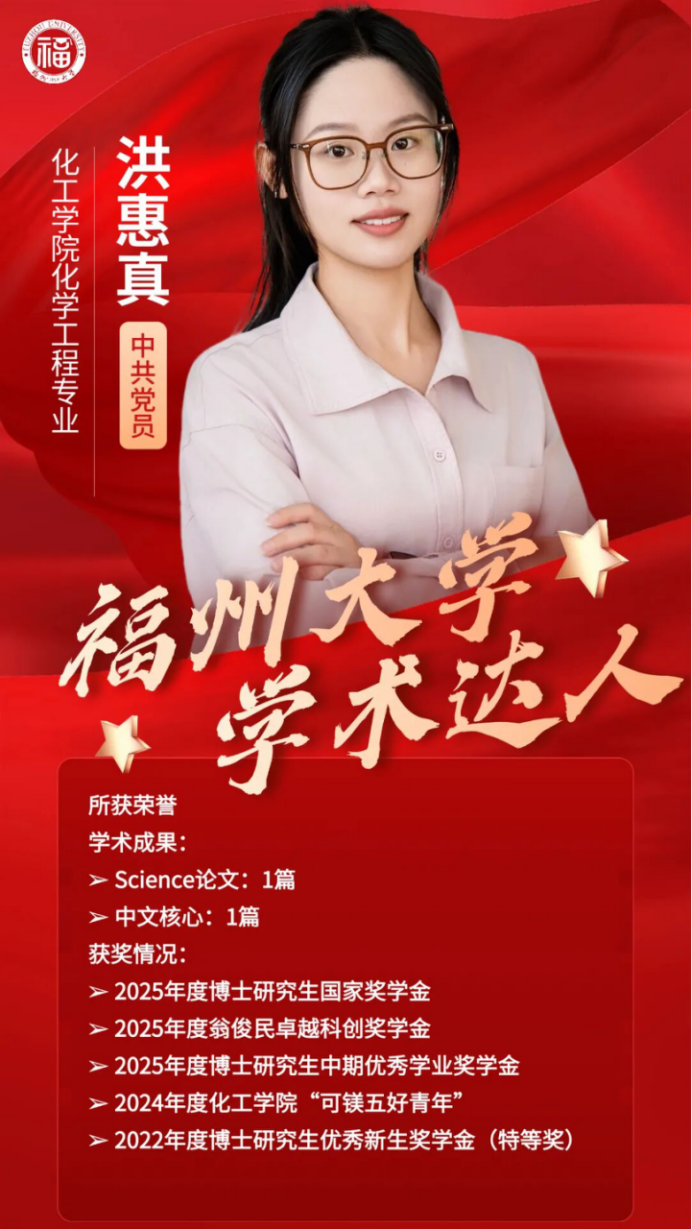 近日,福州大学开展“学术达人”评选活动,经推荐与评审,化工学院两位博士在学术科研中表现突出,荣获福州大学2025年“学术达人”称号!