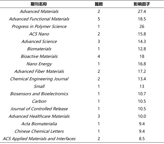 1. Electrospun Polymer Biomaterials. Progress in Polymer Science, 2019, 90, 1.(通讯作者,ESI高被引论文)